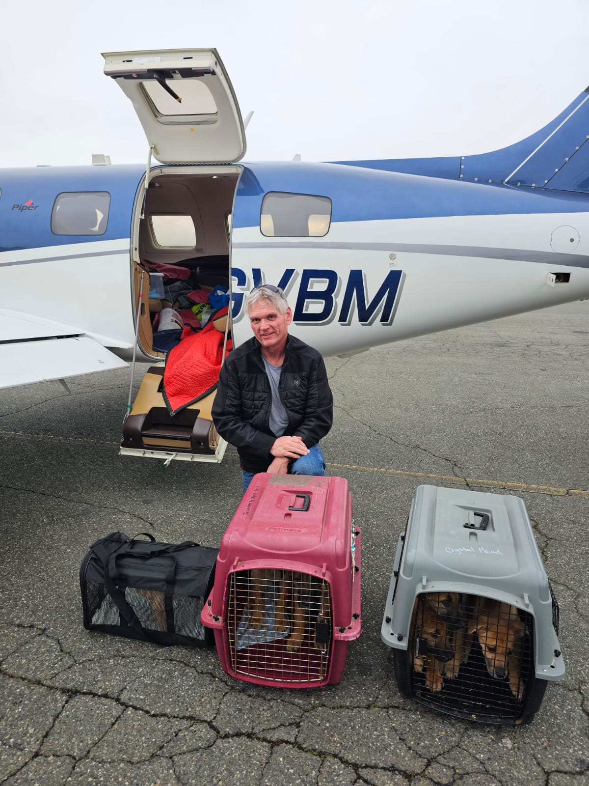 Ken flew the puppies from Saskatoon, SK to Victoria, B.C., delivering them safely to our partner rescue Itty Bitty Kitty Committee, where they could begin the next stage of their journey: medical care, fostering, and eventually adoption.